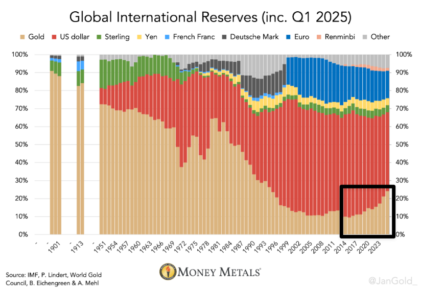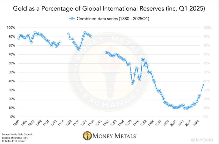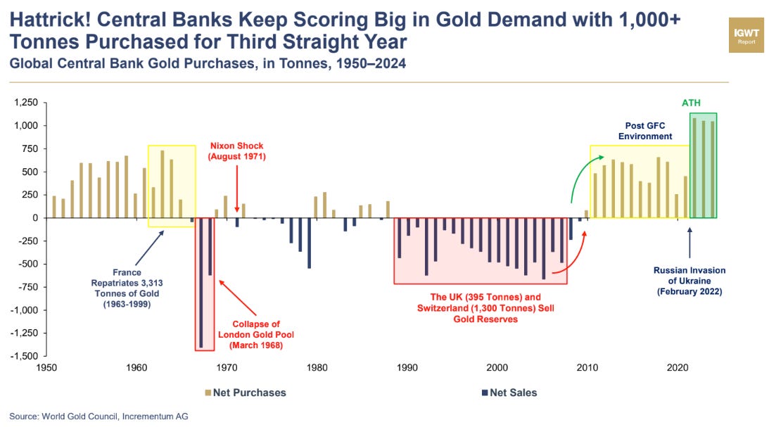 Gold demand from global central banks is accelerating at the same time US Treasuries are being reduced.