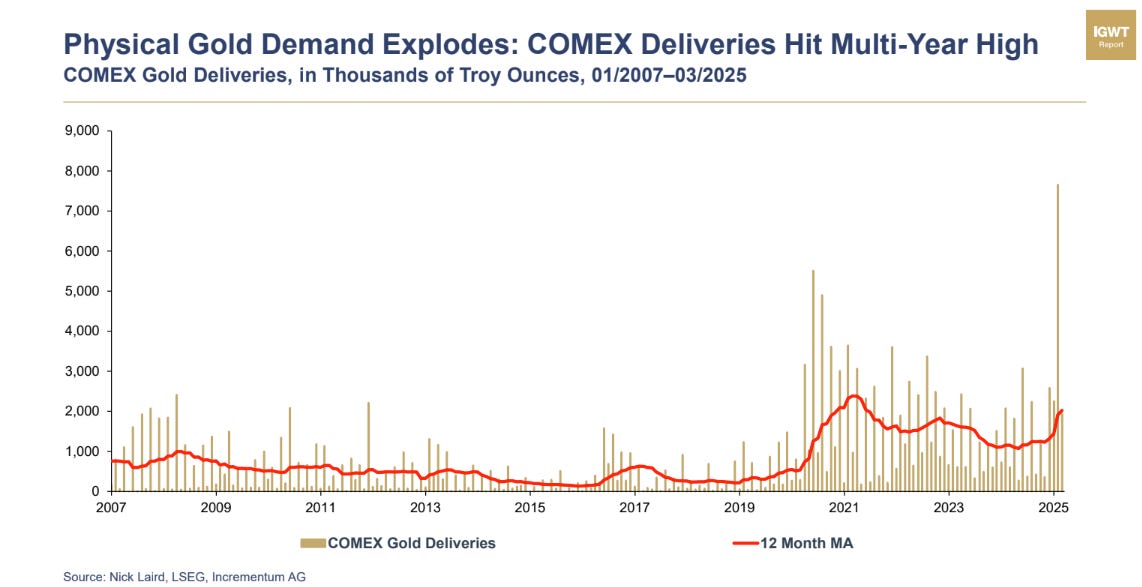 Gold exposure is being specifically expressed via physical deliveries which highlights growing mistrust.